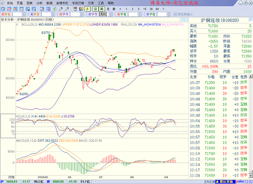 “布林通道”和“火车轨道”,先将MA指标选中,按“DEL”键删除,在输入“BOLL”和