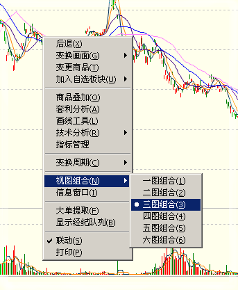 方法:用户在K线图中单击右键,选择“视图组合”。如图1-11-1