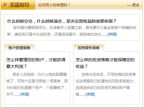 新版小财神网页和和之前的相比,内容更丰富,更具互动性。主要增加调整了一下版块: