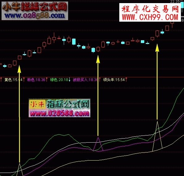 用法:绿线上穿紫时,可作波段买入,绿线上穿白线时,很可能是大牛股。 {文章来至程序化交易网 cxh99.com}