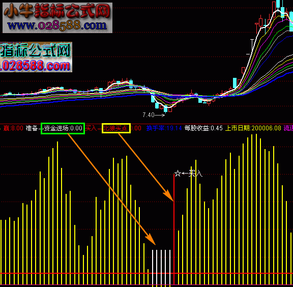 准备→资金进场: IF(准<=8,25,0),STICK,COLORWHITE,LINETHICK2;