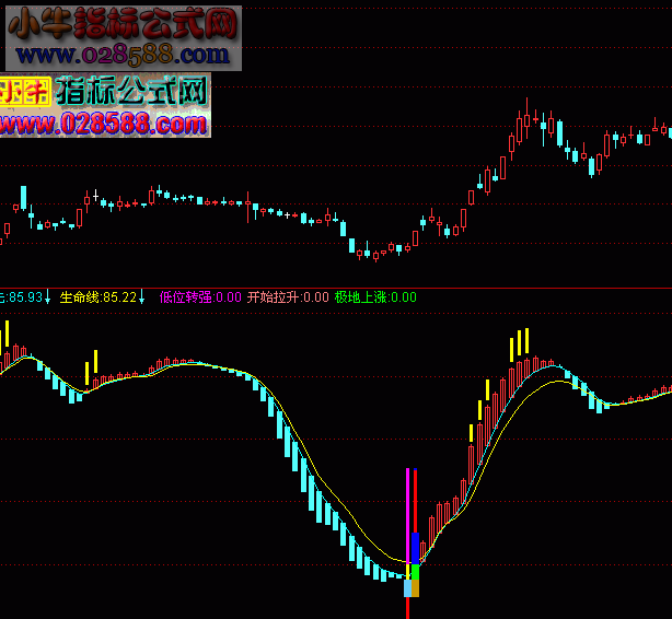 低位转强:IF(CROSS(A5,安全位),50,0),STICK,COLORMAGENTA,LINETHICK2;