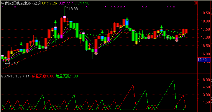 缩量天数:BARSLAST(缩量),COLORGREEN;