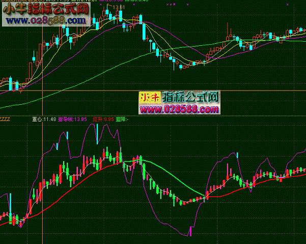 指导线:重心+GAO*(RSI-0.5),COLORMAGENTA,LINETHICK1;