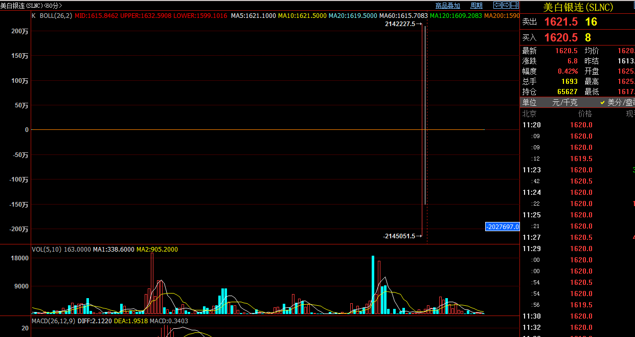 美白银连 分时K线出错,求改正啊博易技术人员: 横成一条线了