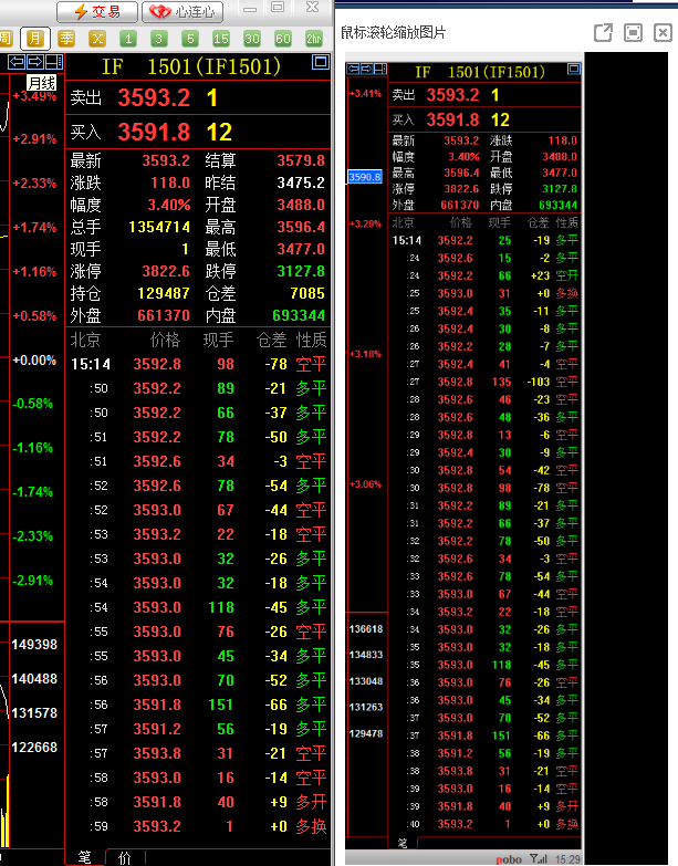 为什么if1501 信息窗口的数据只到 15:14:40, 之后没有数据? [博易POBO]