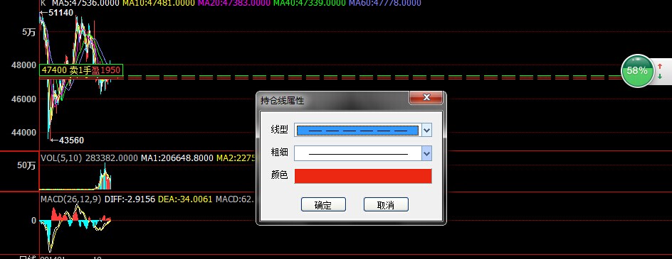 问题1和问题2我这边已经记录下来稍后会提交给我们产品负责人,问题3,我们新版本5.2功能,针对持仓线的这个功能有个新的改善,可以自己进行自定义的设置颜色和显示的形式,您可以参考一下。如图: