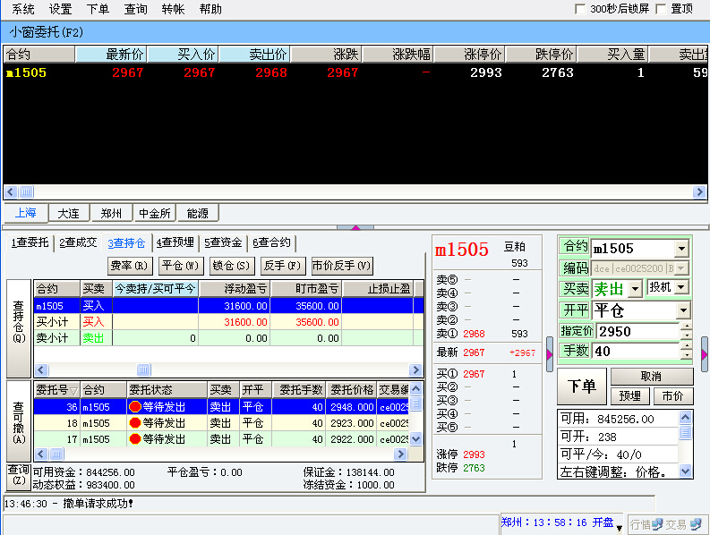 发了几次单都提示等待发出,我用的是快捷平仓也不行?事后等半天没结果我只好撤单了!
