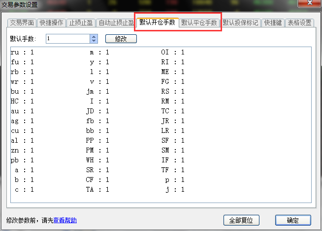 博易技术人员: 您好,默认开平仓手数我们闪电手里是可以设置的,针对品种来设置,开仓平仓分别设置(见下图):)