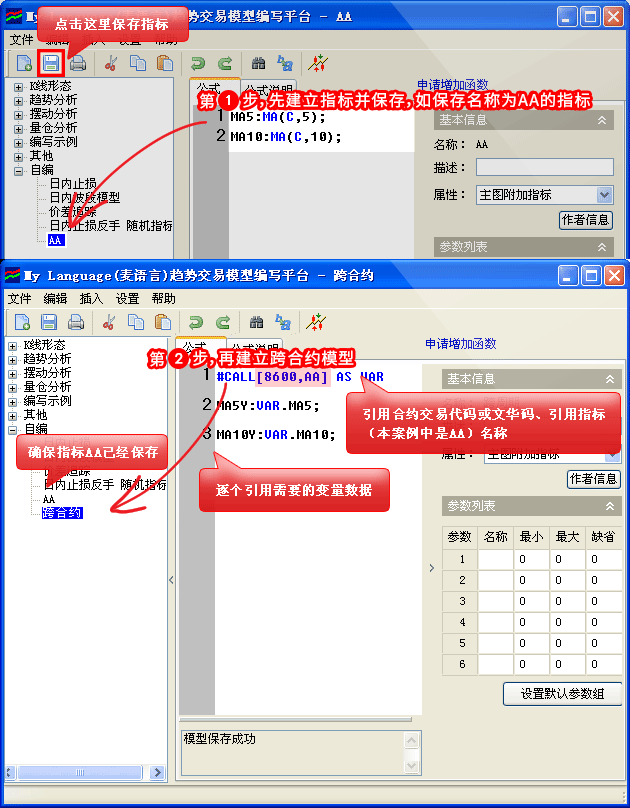 建立好的跨合约模型加载到1分钟周期上,AA指标不需要加载,只加载跨合约模型即可。