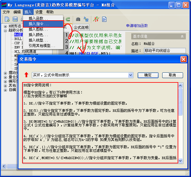 更多分组指令的编写方法,可以参见模型开发平台中“插入指令”中的说明,如下图所示。( www.cxh99.com )