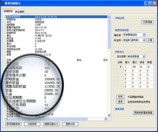 (例如:使用DAYTRAD函数,是初始资金+最后一天的盈亏值)之后的指标均由“调整后的权益”计算得来的。