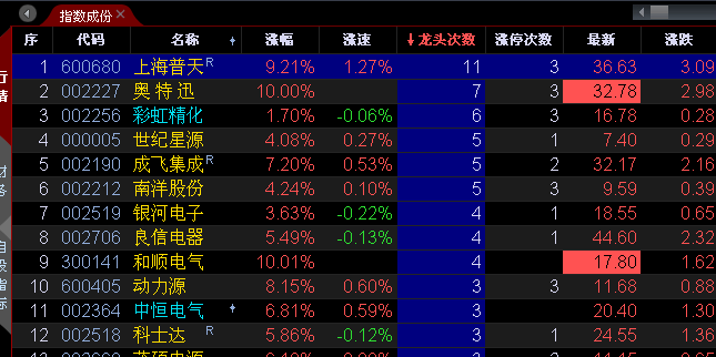老师:我选定板块后,对该板块的股票进行区间统计,显示的页面上(龙头次数和涨停次数都是0)能否把区间涨跌幅度,龙头次数,涨停次数,当日涨跌,合并在一个页面,这样就可一目了然,方便 方便选股。谢谢 !