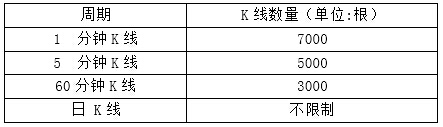 博易技术人员: 软件上的历史K线过后均会保存在本地电脑上,需要查看,可以按CTRL+方向左键,向前请求。如果是分钟周期,则可能会因为时间久了看不到,因为小周期保存数量有作限制,如下: