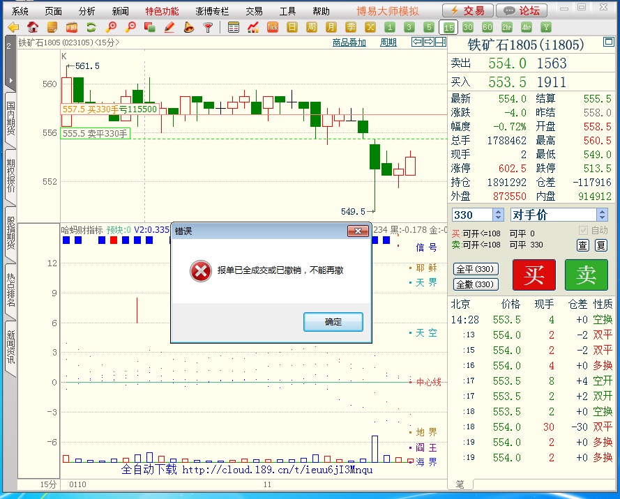 博易技术人员: 同时无法全撤