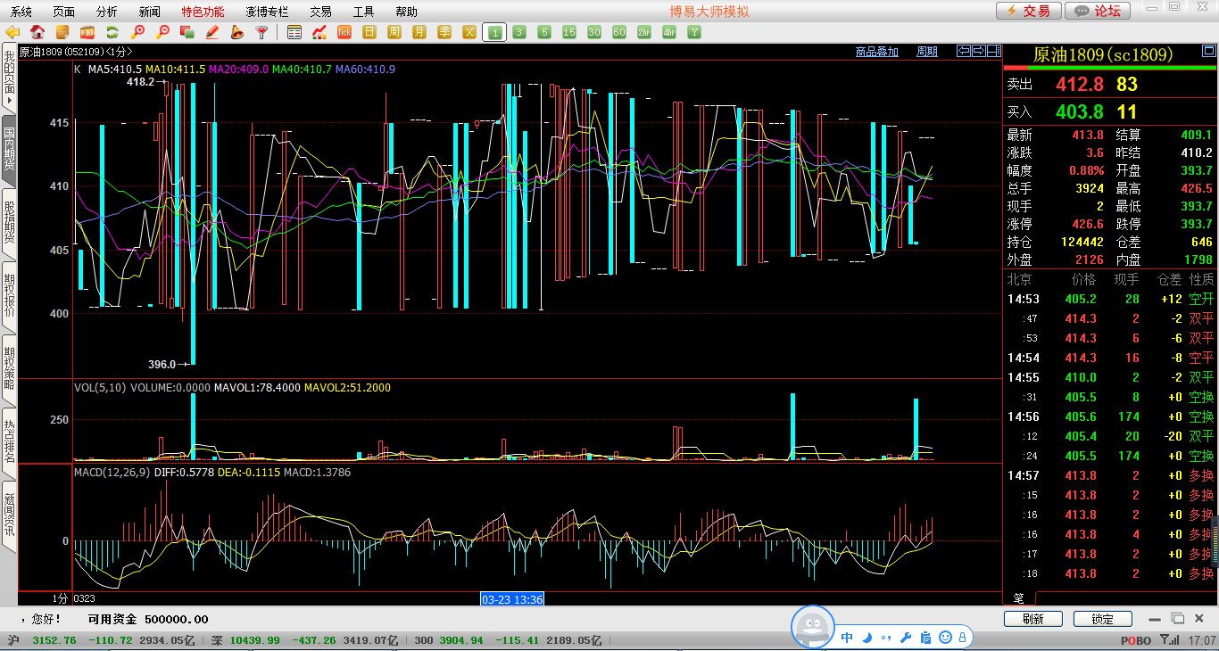 再博弈大叔模拟盘界面里面看INE原油期货仿真的行情怎么看不懂 走势不是和国际上是一样的吗