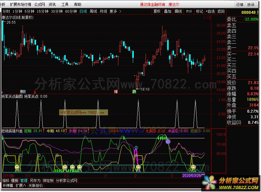 将军买点 短绝底强升追(通达信公式 副图指标公式 选股 公式、源码 测试图)[通达信公式]
