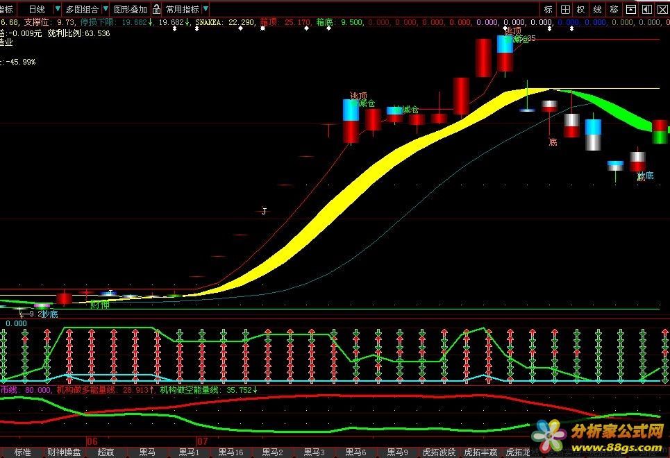 我一直用的主图指标非常准,我已有几百个指标没一个有它准的加密要注册码请高手特别!(主图)不特别只能看到一部分,大智慧新一代以上版都能用,我经过两年的验证,如果出现(财神)成功率可以达到80以上。一个注册码我试过只能用一台电脑,我是能用的,没办法,我是出钱买的,别人想用只有特别,别无他法。我觉得我的指标已不错,但这个指标更好,想要的就顶吧,我不是为了赚分,赚分对我来说也没有什么用,有好东西只是想让大家分享学习。我有好多指标也是从网上下的,谢谢各位老师。