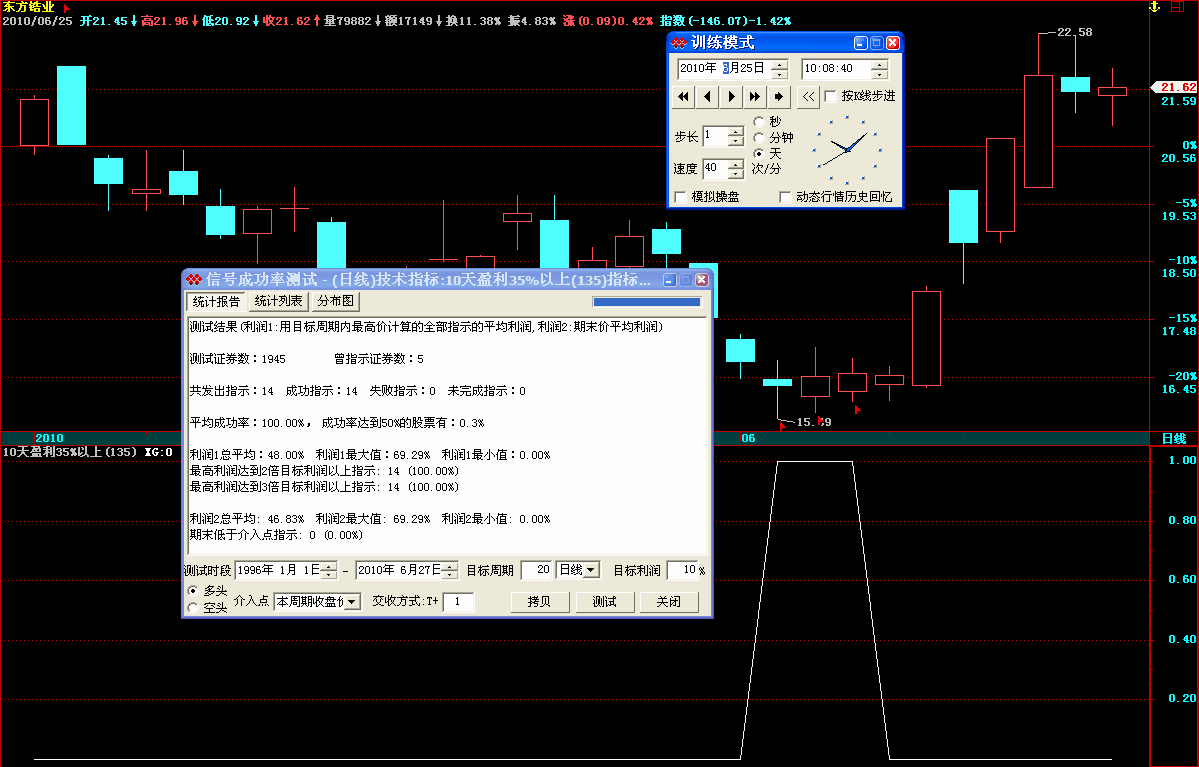 用训练模式回放完全可以看出是有未来性质,检验指标有准确性唯不是有没有未来性质,而是要选出股来证实.